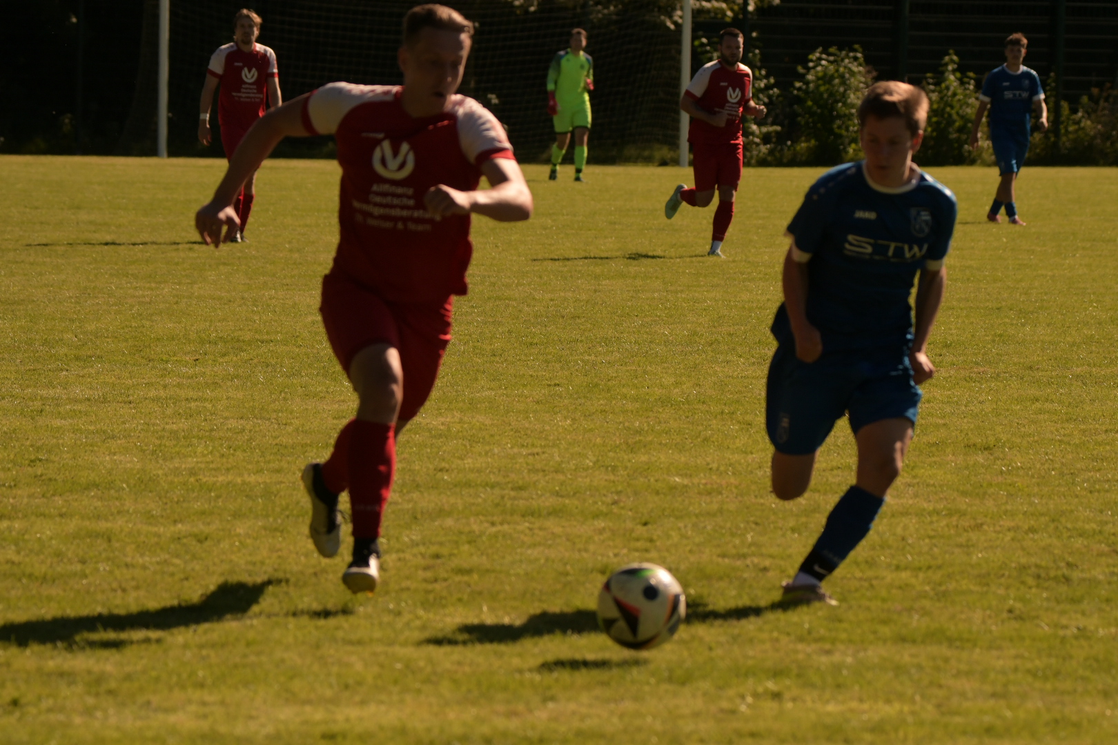 Die zweite Hälfte begann mit einem Schreckmoment für die SGM. Direkt nach Wiederanpfiff erhielten die Gäste einen Freistoß, der scharf an den kurzen Pfosten gespielt wurde. Dort kam ein Eschacher Angreifer frei zum Abschluss, traf jedoch nur den Pfosten – Glück für die Hausherren, die damit die knappe Führung verteidigen konnten. In der 67. Spielminute zeigte die SGM dann ihr spielerisches Potenzial. Nach einem Angriff über die linke Seite wurde Ercolani an die Grundlinie geschickt. Von dort spielte er den Ball flach in die Mitte auf Koller, der mit einem geschickten Laufweg den Verteidiger band und den Ball bewusst durchließ. Dadurch stand M. Radtke völlig frei und konnte mühelos zum 2:0 einschieben. Nur fünf Minuten später folgte der nächste Treffer. Ein langer Ball wurde von D. Pfister stark behauptet, der sich im Zweikampf durchsetzte und den startenden Mayer in Szene setzte. Dieser blieb vor dem Torhüter eiskalt, legte den Ball uneigennützig quer auf den mitgelaufenen Ercolani, der nur noch zum 3:0 einschieben musste (72.). In der Nachspielzeit setzte die SGM noch einmal nach. Mayer lief alleine auf den Gästetorhüter zu, wurde im Strafraum regelwidrig zu Fall gebracht und trat anschließend selbst zum Elfmeter an. Souverän verwandelte er zum 4:0 (90.+1). Kurz vor dem Schlusspfiff gelang den Gästen aus Eschach zwar noch der Ehrentreffer zum 4:1 (90.+4), doch änderte dieser nichts mehr am klaren und verdienten Heimerfolg der SGM.
