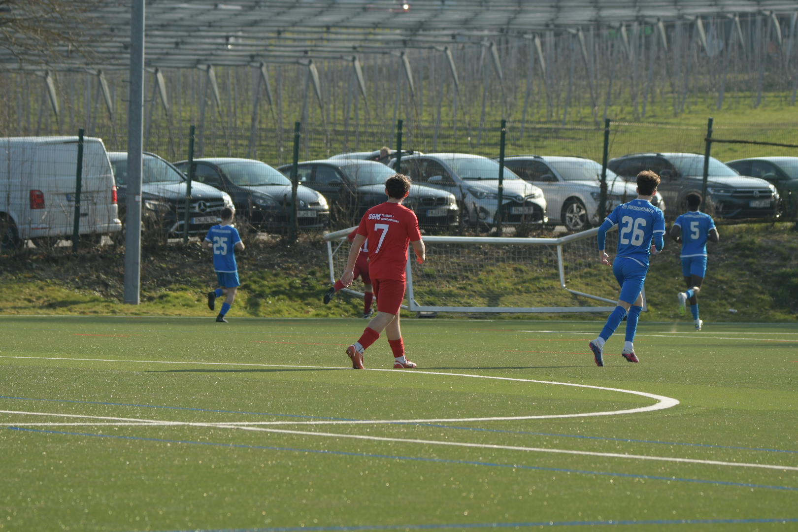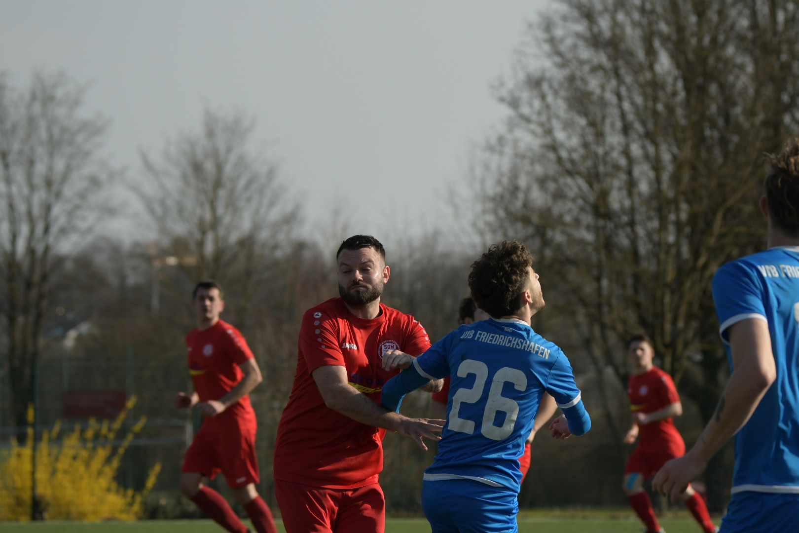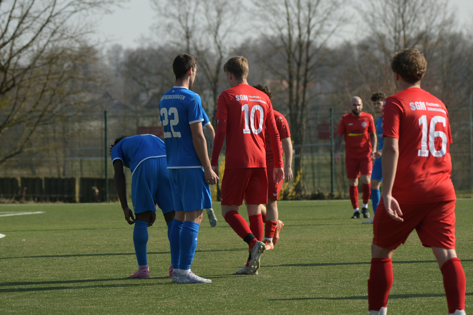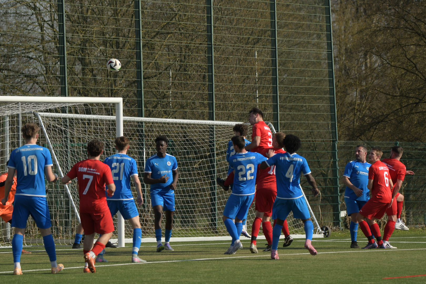 Bei sommerlichen Bedingungen auf dem Kunstrasen in Schnetzenhausen war alles angerichtet für ein intensives Stadtderby – und genau das bekam man auch. Die Ausgangslage war dabei klar: Während die SGM nach der 1:3-Niederlage gegen die zweite Mannschaft des TSV Eschach auf Wiedergutmachung aus war und vor heimischem Publikum eine Reaktion zeigen wollte, stand der VfB Friedrichshafen II bereits vor dem Anpfiff unter Druck. Die zweite Mannschaft des VfB steht aktuell auf einem Abstiegsplatz und ist dringend auf Punkte angewiesen, um sich in der Rückrunde aus der Gefahrenzone zu befreien.